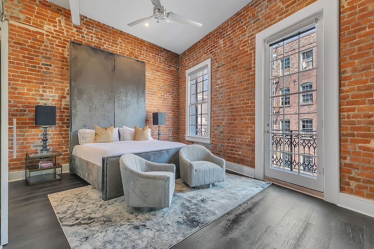 Experience downtown Lafayette from this modern, 2-bedroom industrial loft for 4. Housed in a renovated 1940s postal building, it blends historic charm with contemporary style. Enjoy a fully equipped kitchen, dedicated workspace, and shared amenities like a game room and fire pit. Perfectly located for festivals, dining, and nightlife—all just steps away. Walk to everything from this unique urban getaway.