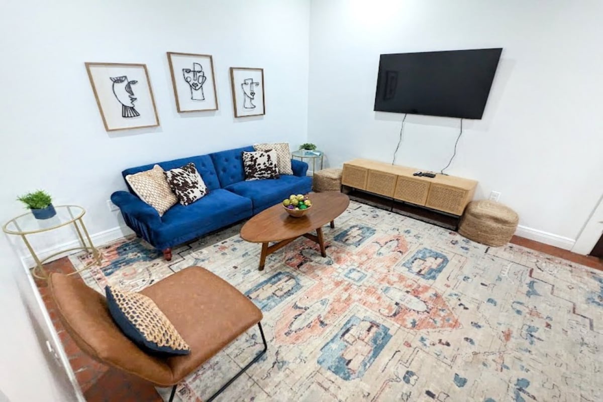 Gorgeous two persons suite, short walk to Frenchmen St. (3 mns) and the French Quarter (10 mns). Perfect for solo traveler or a couple, this comfortable apartment in a renovated single shotgun has a queen bed, a walk-in shower, a retro kitchenette (no full kitchen) and a large, shared outdoor patio. The place has a little bit of everything you need to experience New Orleans like a fabulous local. It consists of a bedroom, a living room, and a large bathroom.