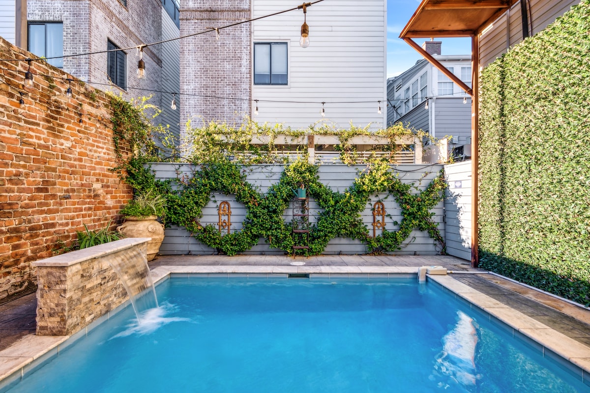 Walkable to Superdome - Two Blocks off St Charles! This home has been restored to highlight original pine floors, intricate cypress wood accents and exposed brick fireplaces. The 5br/6ba spans over 3,400 square feet with an open floor plan that allows your group to hang out together while maintaining large private sleeping areas. The backyard and pool area are a dream - lush tropicals and huge swimming pool, you won't want to leave! Feel secure with the private gated parking for 2+ vehicles alon