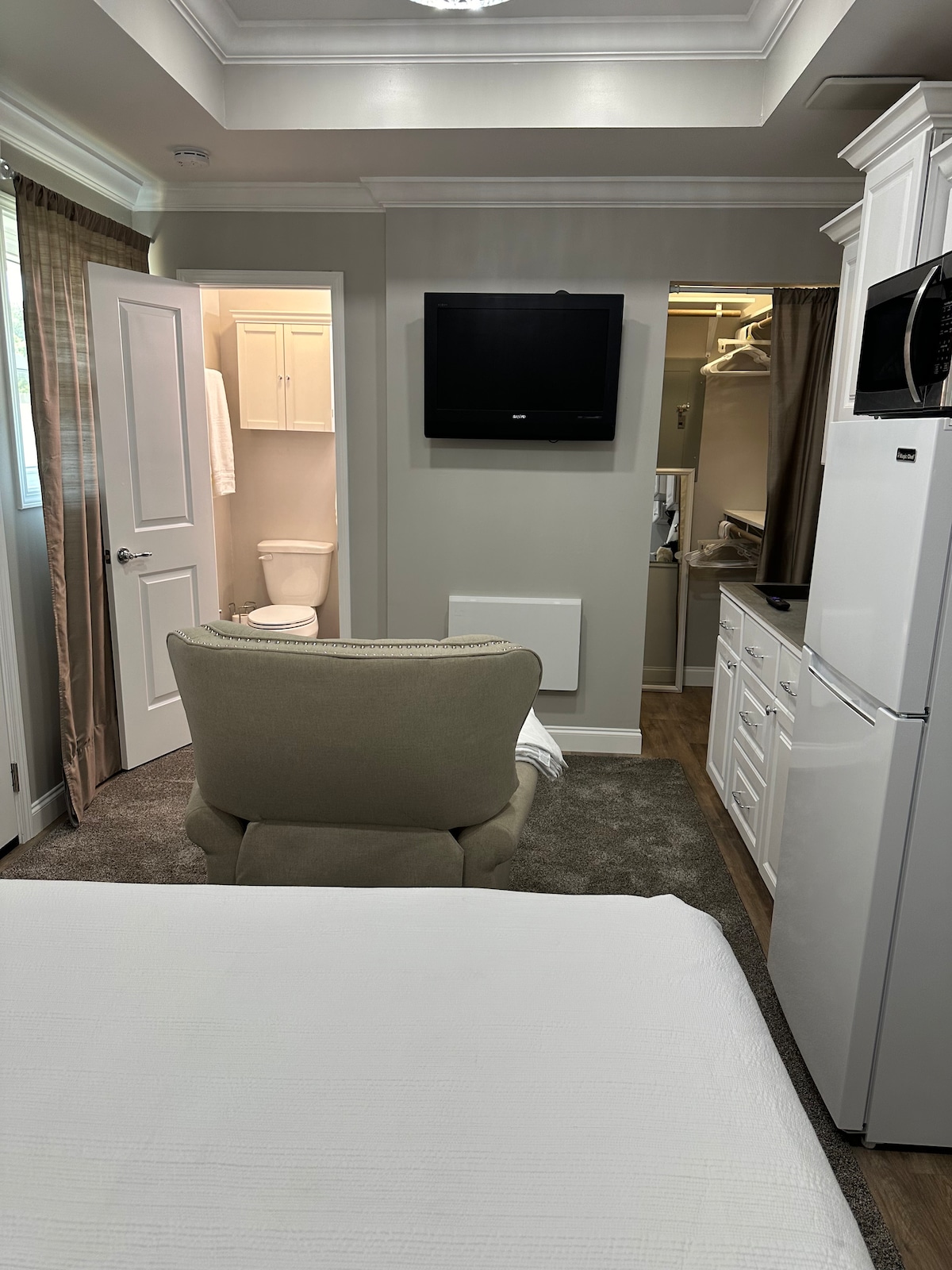 市中心。标准双人床、洗衣机/烘干机、Keurig Duo。