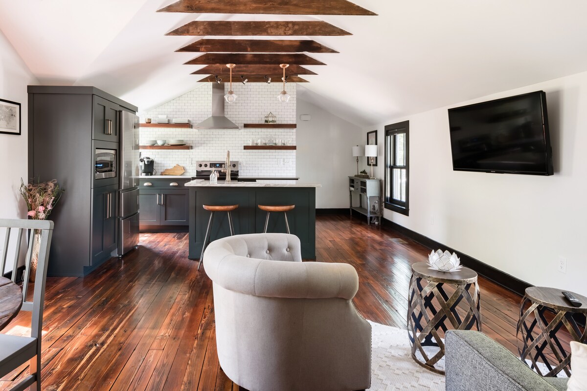 Selected by Architectural Digest as best Airbnb in Kentucky. Sink into the rounded, studded armchair under exposed wooden beams at a characterful retreat with minimal, modern style. This historic space contrasts deluxe touches including the 6-foot soaking tub with sash windows and a sliding barn door. This fully furnished apartment is perfect for a getaway weekend or for short to medium rental as an executive apartment. The historic property has been lovingly renovated as a luxurious apartment with high-end finishes while maintaining the historic character of its past as a carriage house. You enter the apartment through a hallway that houses a dedicated washer and dryer. Upstairs features a large living/working space, a beautiful kitchen with brand new-high end appliances, and a 50" 4K smart TV. The sliding barn door separates the bedroom, where you will also find a large walk-in closet, a marble bathroom with a 6 foot soaking tub, and a brand new queen sized Tuft and Needle mattress. We will meet our guests and orient them to the house and neighborhood, or provide self check-in depending on preference. For the remainder of your stay, we will be close by for any additional needs. Cherokee Triangle is one of the most historic neighborhoods in Louisville, built in the late 19th century and part of the larger Highlands area. The tree-lined streets are a short walk from the restaurants, bars, and boutiques on Bardstown Road. You do not need a car around here - everything is a short walk away. Parks, restaurants, shops, grocery stores are all within 5 minutes on foot. Downtown or Churchill Downs are is a 5-10 minute drive away. Street parking is available.