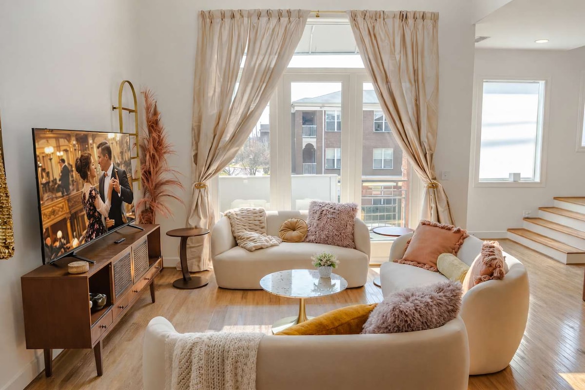 Experience Louisville like a boutique hotel stay in the heart of downtown. This luxury apartment sleeps upto 4 with a king memory-foam bed and a queen memory-foam sleeper sofa for a restful night. Enjoy complimentary coffee and skyline views from your private balcony. Walk to dining, nightlife, and 4th Street Live!, then unwind with the heated pool, hot tub, golf simulator, gym, or a cozy movie night. Elevated comfort, prime location book your stay with us today.