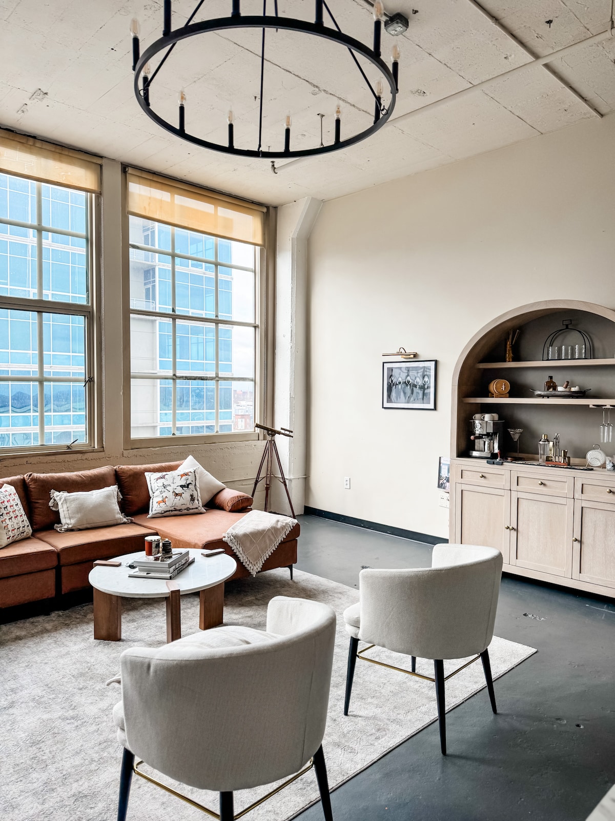 This spacious suite pays tribute to Louisville’s own Muhammad Ali in true urban style! Located in a lovingly renovated 1843 church, it boasts a king-size bed, full bath, kitchenette with table for 4, and lounge sofas that comfortably sleep 2. You'll be in the middle of all Market Street has to offer — steps from Rabbit Hole Distillery, Nouvelle Wine Bar, Garage Bar, and tons more. A 10-minute ride from the airport, half a mile from Slugger Field, and 1 mile from YUM! and Convention Centers.