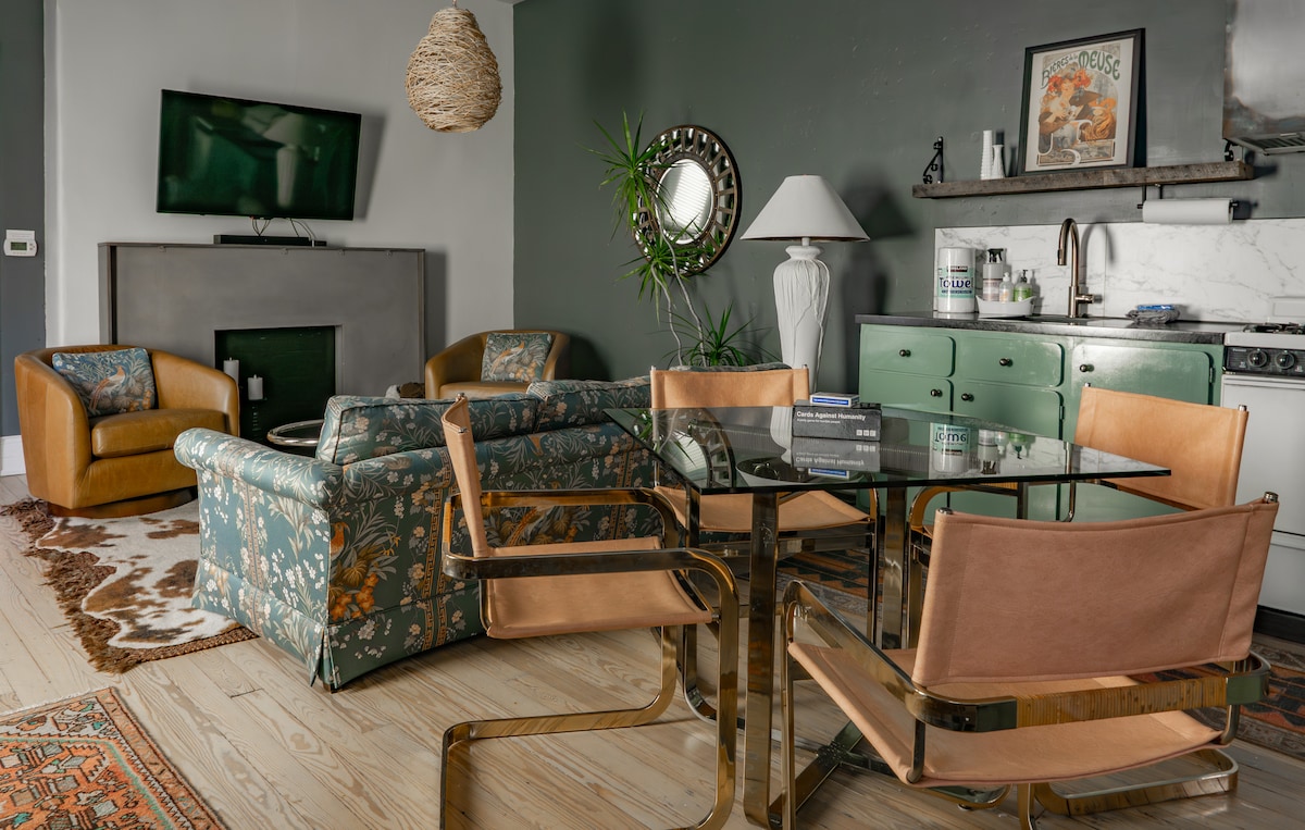 Selected by Architectural Digest as best Airbnb in Kentucky. Sink into the rounded, studded armchair under exposed wooden beams at a characterful retreat with minimal, modern style. This historic space contrasts deluxe touches including the 6-foot soaking tub with sash windows and a sliding barn door. This fully furnished apartment is perfect for a getaway weekend or for short to medium rental as an executive apartment. The historic property has been lovingly renovated as a luxurious apartment with high-end finishes while maintaining the historic character of its past as a carriage house. You enter the apartment through a hallway that houses a dedicated washer and dryer. Upstairs features a large living/working space, a beautiful kitchen with brand new-high end appliances, and a 50" 4K smart TV. The sliding barn door separates the bedroom, where you will also find a large walk-in closet, a marble bathroom with a 6 foot soaking tub, and a brand new queen sized Tuft and Needle mattress. We will meet our guests and orient them to the house and neighborhood, or provide self check-in depending on preference. For the remainder of your stay, we will be close by for any additional needs. Cherokee Triangle is one of the most historic neighborhoods in Louisville, built in the late 19th century and part of the larger Highlands area. The tree-lined streets are a short walk from the restaurants, bars, and boutiques on Bardstown Road. You do not need a car around here - everything is a short walk away. Parks, restaurants, shops, grocery stores are all within 5 minutes on foot. Downtown or Churchill Downs are is a 5-10 minute drive away. Street parking is available.