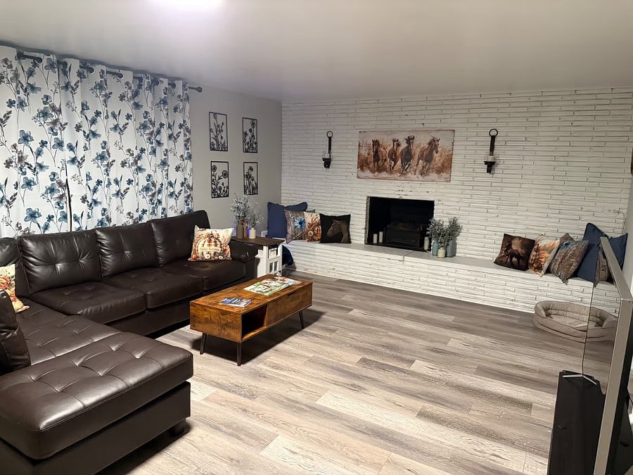 • Spacious 5BR, 5BA home—great for groups • 1st floor: king bedroom + full bath in hallway • 2nd floor: two king en-suites + queen w/ hall bath • Walkout basement: two king beds w/ privacy curtains, full bath + living room • Hot tub • Fast Wi-Fi • Easy street parking • Minutes to Expo Center, Churchill Downs & Downtown • Derby, Bourbon & Beyond & Louder Than Life guests must inquire first, strict cancellation policy required. • Rental agreement + damage deposit required
