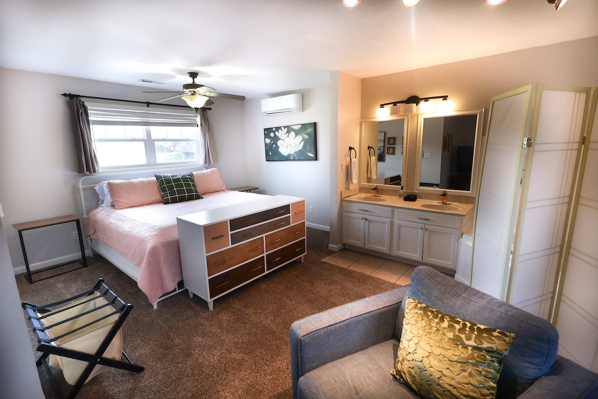 Step into Peppermint Cottage ( breakfast included) and find the perfect blend of convenience and charm! Just 20 minutes from SDF airport, Churchill Downs, and downtown Louisville, this trendy east end haven offers an irresistible walkable lifestyle. Stroll or bike to 18 mouth watering restaurants, 14 unique boutiques, 3 pools and YMCA. Enjoy lakeside fishing, Sunday farmers markets, summer concerts, parks and summer Friday food trucks with live music . Your Louisville adventure awaits !