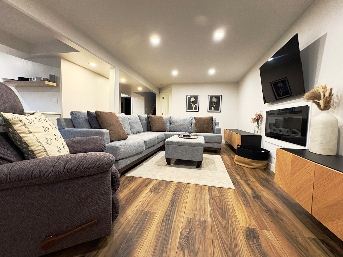 Step into a private and cozy space. Relax watching TV in bed or on the couch. This place is part of our walk out basement, so you may hear day to day living upstairs. For your safety there is a Ring camera installed at the entrance and will light up the entryway when it’s dark. Parking is on the well lit public street. Easily walk up our dedicated Airbnb sidewalk, no steps, walk around to the back of the house. You’ll be in a serene space that makes you feel right at home.