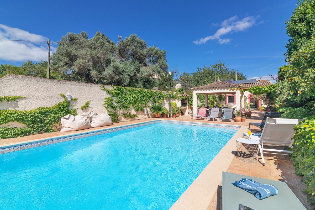Spacious villa nearby the beach, golf courses and Faro's Airport. The house has 200m2, composed with 4 double rooms, 2 bathrooms, kitchen and dinning room, salon, barbecue with wood oven, swimming pool and a big land with fruit trees.Perfect 8 people.Madam Luisa, the owner lives in a separated small apartment in the first floor!She looks after the property in a discrete manner and she makes sure that our guests have a lovely holiday.You always will have an independent/private villa for yourself😊