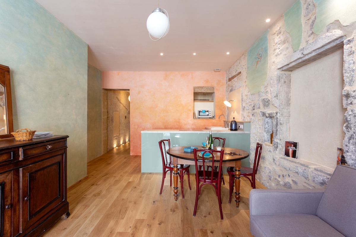 Au cœur du paisible village de pêcheurs de Bouzigues, sur les rives de l’étang de Thau, avec ses parcs ostréicoles et la colline de Sète en toile de fond, ce studio vous accueille en rez-de-chaussée d’une maison ancienne. Charme et magie de la pierre y sont une invitation au voyage dans le temps, à proximité des plages, du port, des restaurants, ainsi que des commerces et services (tabac-presse, épicerie, boulangerie, pharmacie, traiteur, bar, glacier, coiffeur, borne voiture électrique...)