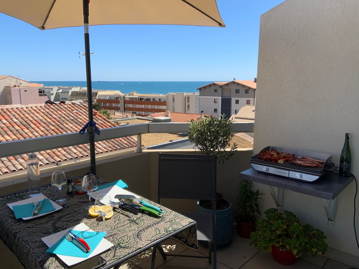 Détendez-vous dans ce lieu de vacances unique avec une vue sur la grande bleue 💙 Ce logement climatisé est tout confort, avec une belle terrasse et son parasol. Sa pièce à vivre spacieuse et lumineuse. Son canapé, sa table à manger et sa cuisine aménagée vous permettront de partager d'agréable moments. Une chambre confortable avec placard de rangement donnant vue mer. Sa salle de douche faite avec goût! Le + une place de parking privé et la WiFi. Que dire... ce logement est un Havre de paix 😍