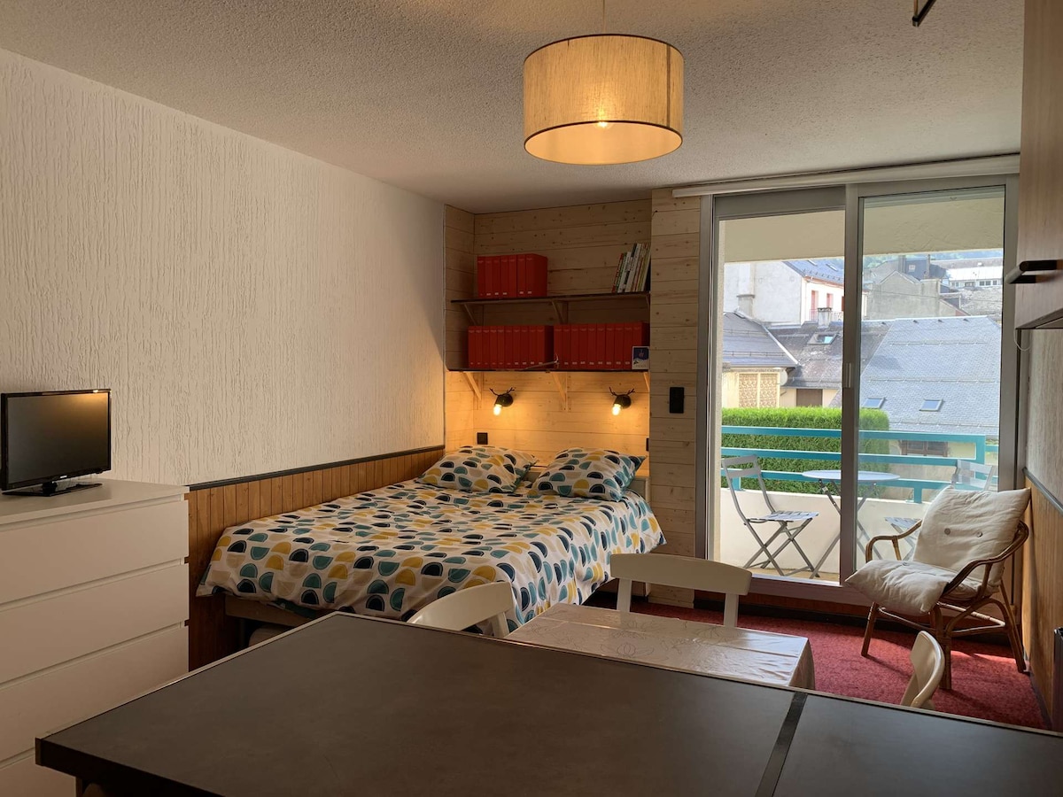 Grand studio ( 37m2) ,à 150 m de la Mairie et de l’office de tourisme,à 8 mn à pied des thermes.1er étage, calme, vue montagne. Entièrement rénové et meublé à neuf . 2 à 4 voyageurs.Tout confort. 3 étoiles, 4 diamants...3 parkings gratuits à proximité.Local à skis privatif,abris vélo collectif dans cour intérieure.Tarification spécifique pour séjour cure de 3 semaines, me consulter pour proposition personnalisée.