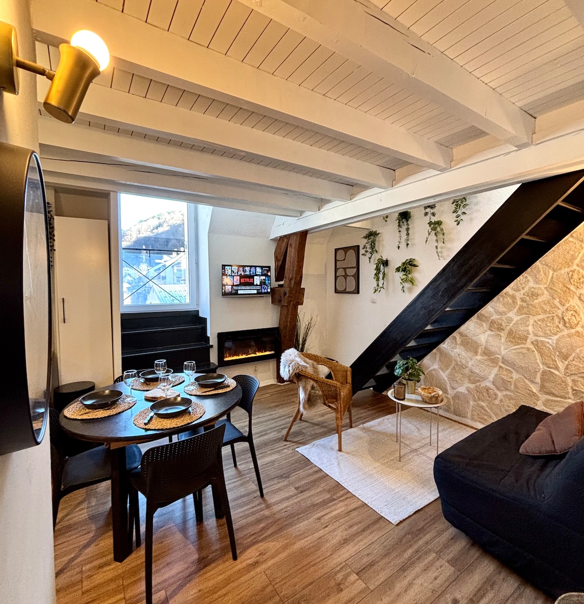 Magnifique appartement en duplex refait à neuf en plein centre ville avec vue imprenable sur le château fort. Parking gratuit, 5mn à pied pour aller à la gare et 5mn à pied également du sanctuaire. Cet appartement dispose d'une salle de sport, d'une salle de jeu, billard, ping pong et flechettes, ainsi que d'une baignoire pour se détendre. Idéal en couple, en famille ou entre amis. Trois portes secrètes sont aussi présentes. Bonne découverte de ce lieu unique !