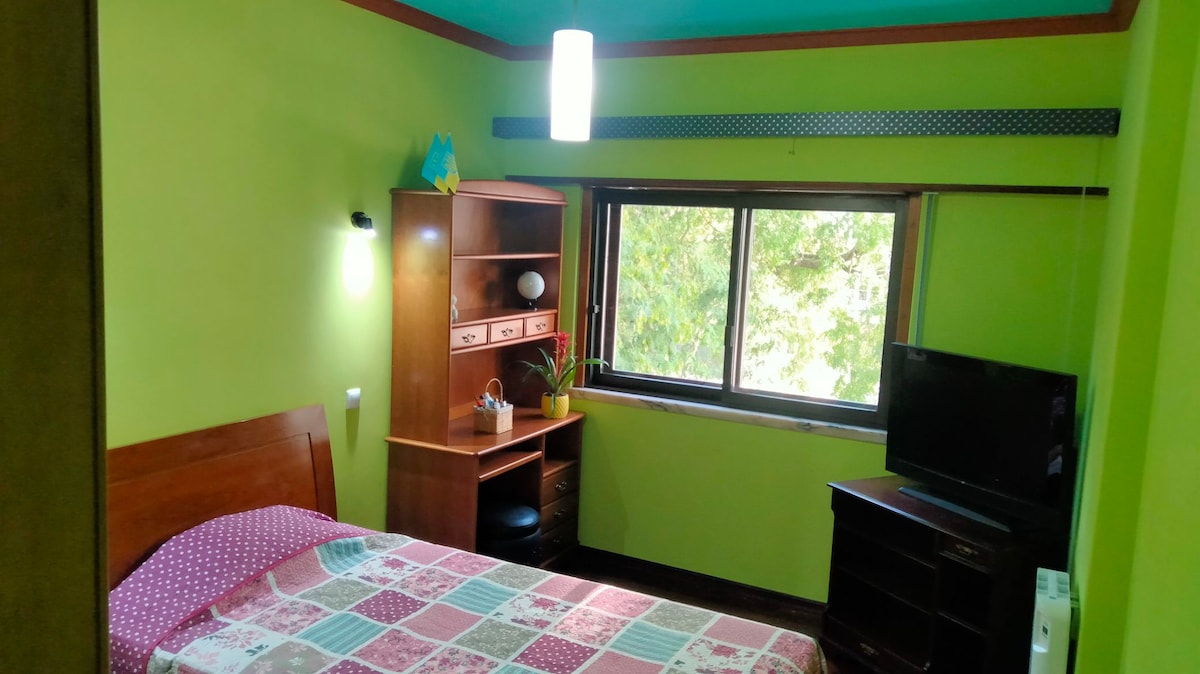 Apartamento com 1 quarto com 2 camas individuais, casa-de-banho privativa, varanda com vista aberta para o mar, espaço de trabalho e cozinha equipada. Piscina e jardim partilhados. Contacto com a natureza, ambiente calmo e ar puro. Acesso a pé à Praia Grande (surf). Estacionamento na propriedade. Se procura alojamento para 4 pessoas, espreite também o anúncio do quarto duplo nº2 que fica mesmo ao lado deste apartamento.