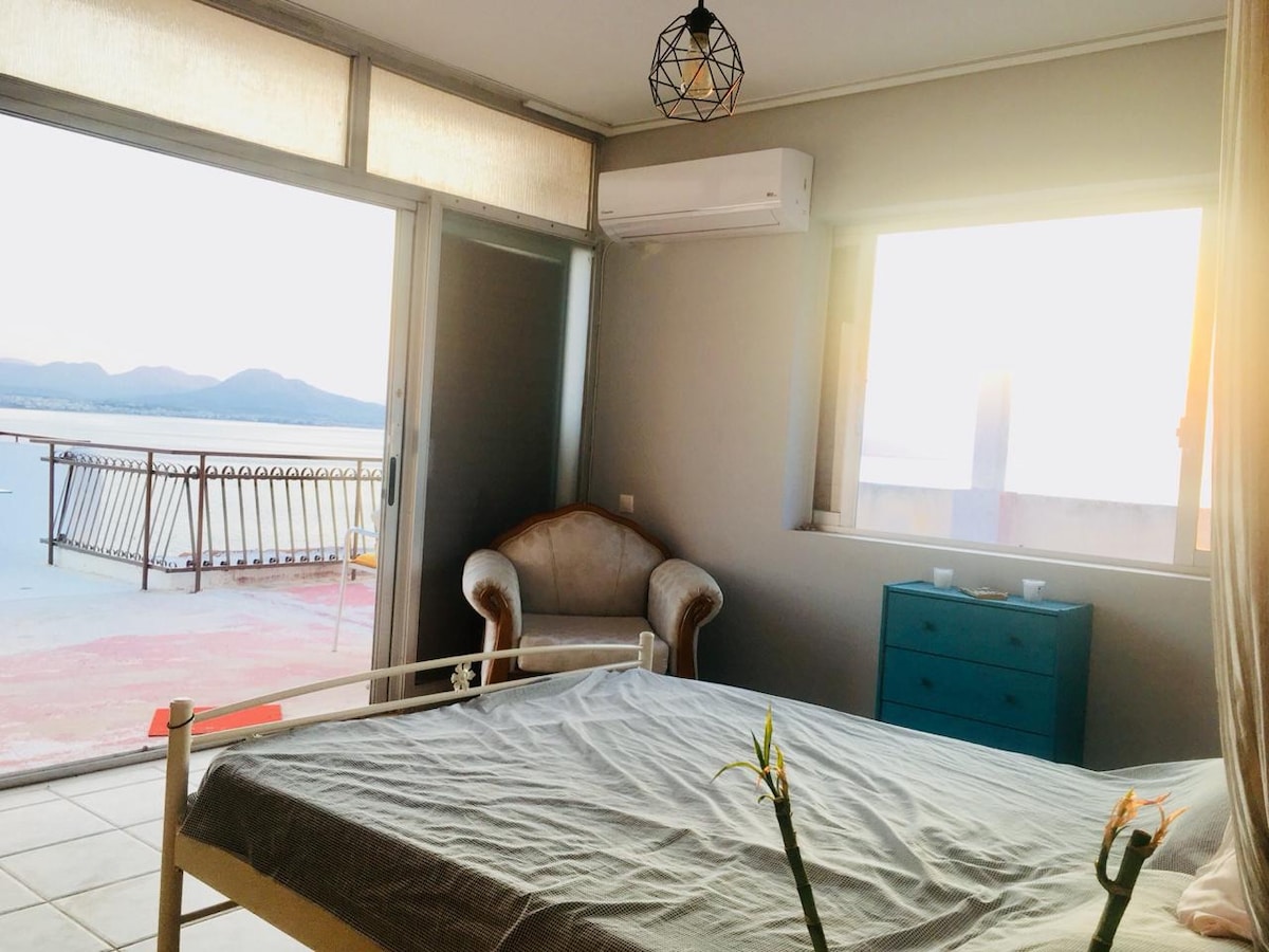 This is an apartment of 60 sq.m. on the 5th floor, by the sea, bright, comfortable and airy. It has 2 balconies with panoramic view to the sea, thermal springs and Geraneia mountain. There is a bedroom, a dining room and a living room with sofa/double bed. Renovated in May 2020 with modern furniture in a quiet and safe neighborhood. 20 meters from the beach. 160 meters from spa, and 500 meters from Loutraki center. Suitable for couples, as well as for groups or families.
