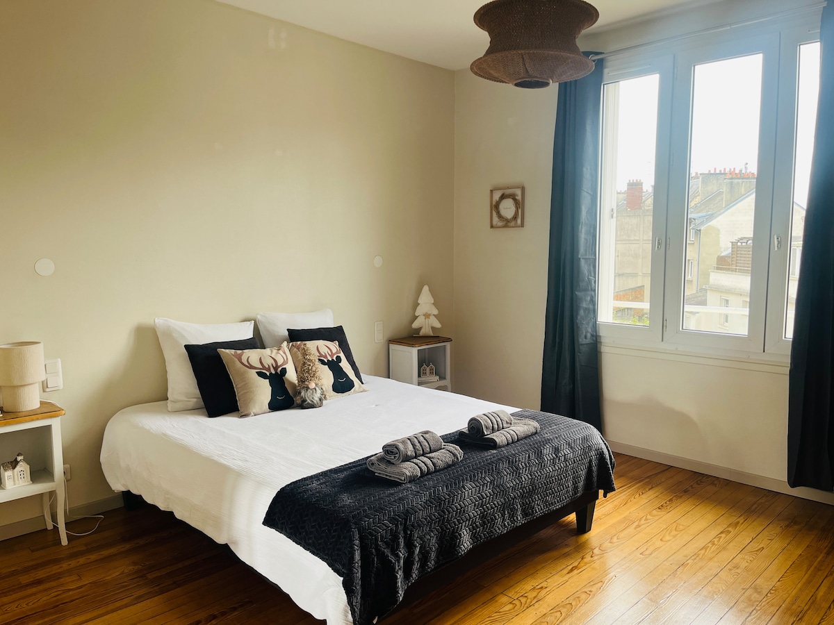 🏰 Appartement rénové de 80 m² avec vue imprenable sur le Château de Caen et parking privé et sécurisé. 🌼 Il dispose de deux chambres, d'une cuisine équipée, d'un salon avec coin repas, d'une salle de bain avec douche et d'un balcon/terrasse privée. 🛜 Wi-Fi et TV inclus. ✨Situé dans le quartier emblématique du Vaugueux, en face du Château, près des ruelles pavées, maisons médiévales, restaurants et bars — un cadre historique unique et plein de charme qui saura vous séduire !