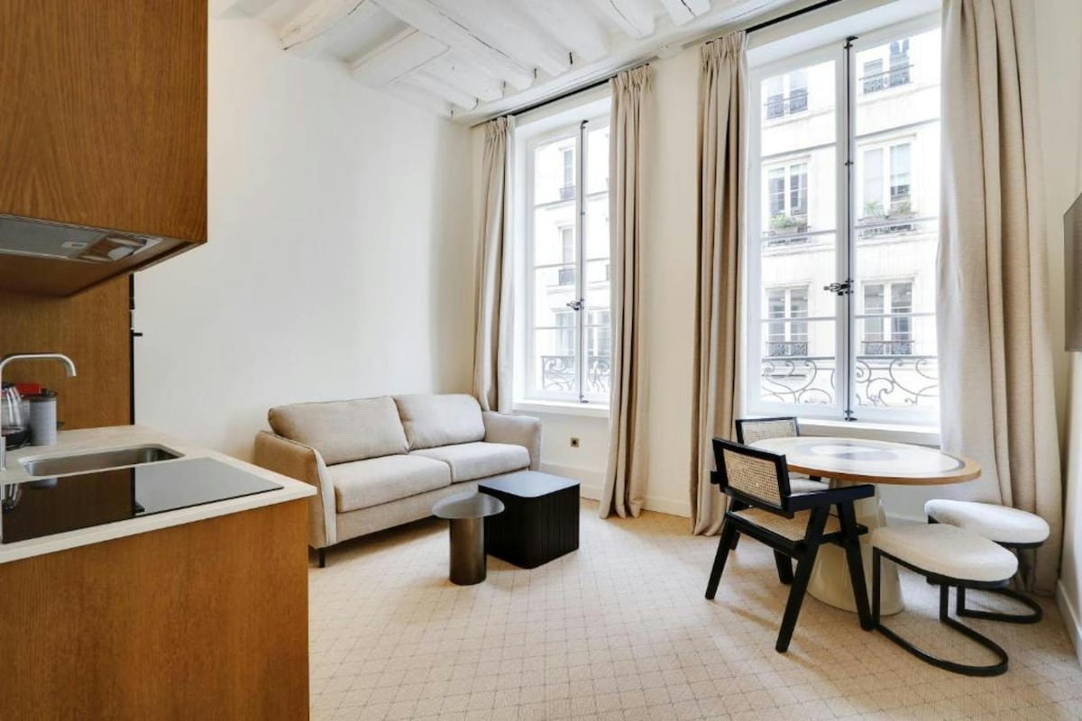 The Studio offers a warm and functional space, perfect for a solo or duo stay. With a surface area of 24 m², this bright and cozy apartment features a king-size bed (180 x 200 cm) or two single beds on request, a bathroom with a shower designed as a true wellness retreat, complete with toiletries, bathrobes, and slippers, as well as a fully equipped kitchenette. Designed to combine comfort and practicality, the Studio is ideal for enjoying a Parisian getaway while feeling right at home.