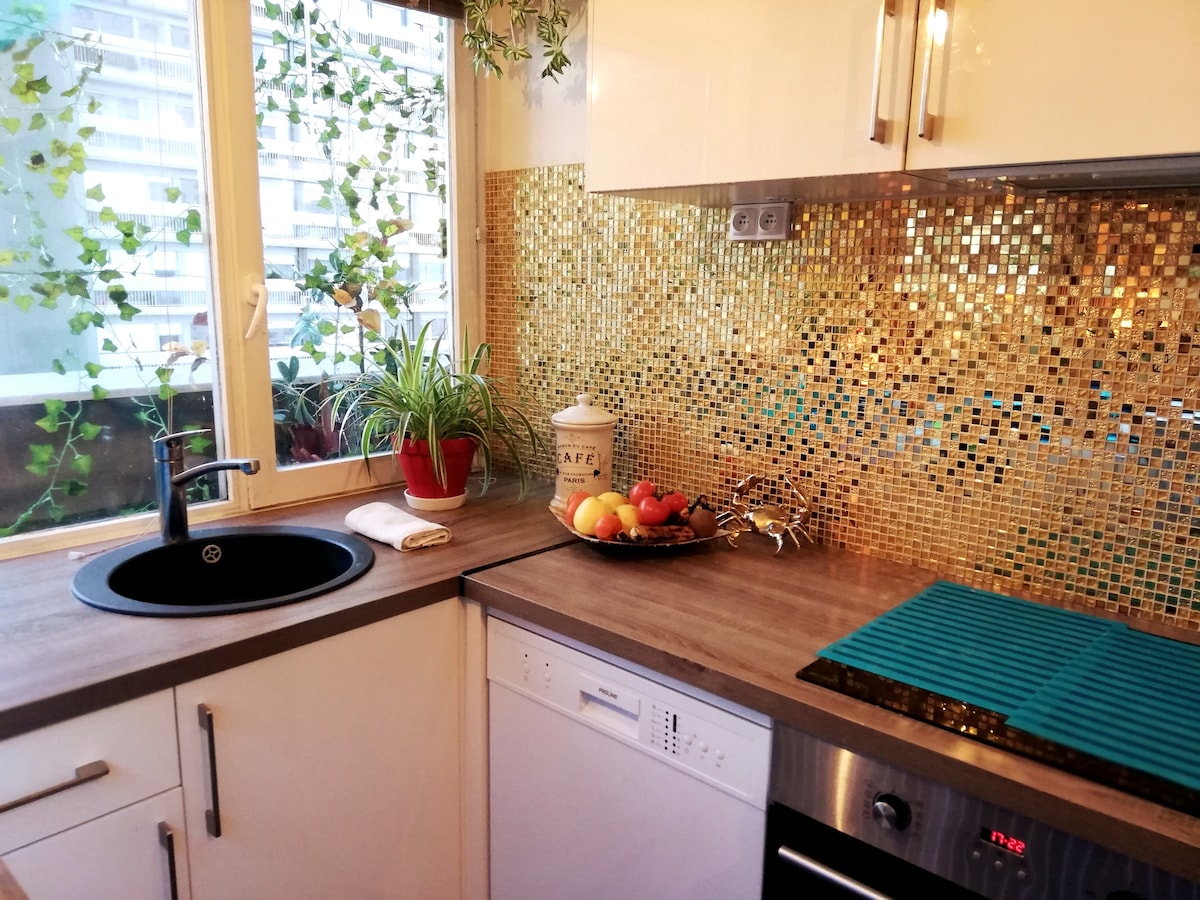 ✨Magnifique appartement climatisé avec Jacuzzi, Sauna et Terrasse idéalement situé aux abords de Paris, Gare RER C à 100m et Métro LIGNE 7 à 5 min à pied🚶. A votre disposition : - jacuzzi et sauna privatifs - Chambre avec lit double KING SIZE (180cm) - Kitchenette équipée : réfrigérateur, plaques à induction, micro-ondes, machine NESPRESSO , bouilloire - Terrasse cocooning - Salle de bain douche à l'italienne - Draps, peignoirs et serviettes de toilette fournis