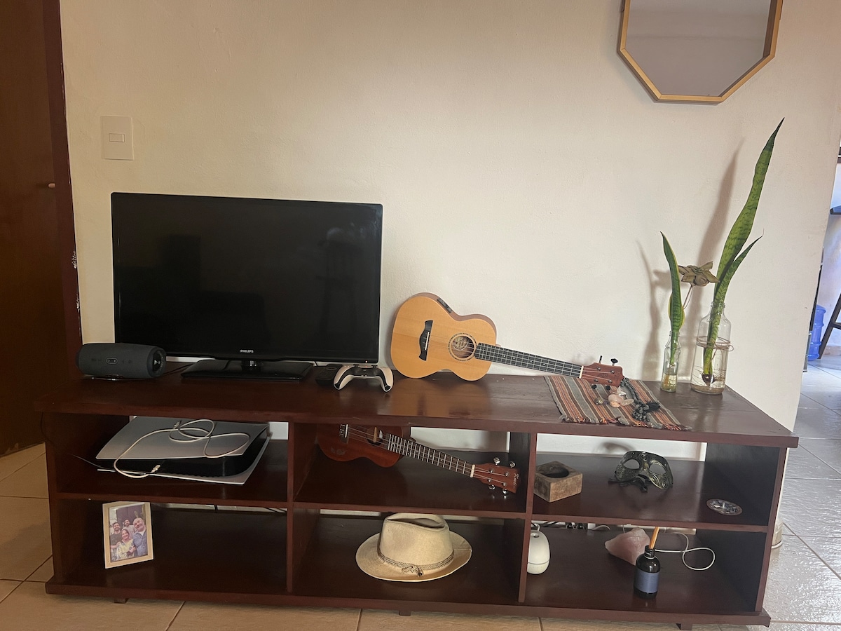 Dejamos a disposicion nuestra casa que tanto amamos, por motivos de viaje y para que otras personas puedan disfrutar de nuestro espacio. Casa completa para hasta 5 personas, ideal para disfrutar de la semana de Rebelión. 2 cuartos (uno en suite con cama queen), living, cocina totalmente equipada, galería amplia y patio con césped y piscina a estrenar. Ventilador de techo con control remoto de 6 velocidades en ambos cuartos y living.
