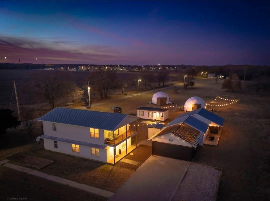 This luxurious cabin offers modern comforts and natural beauty. Just a short drive from the vibrant Dallas Fort Worth area, this secluded 42-acre haven offers the ideal escape for relaxation and adventure. Surrounded by nature, yet close to local wineries and attractions. Enjoy a cozy stone electric fireplace, fully equipped chef's kitchen, BBQ grill, fire pit, wrap-around porch, and breathtaking views. a second cabin Windwalker is located on property a well 3BDR