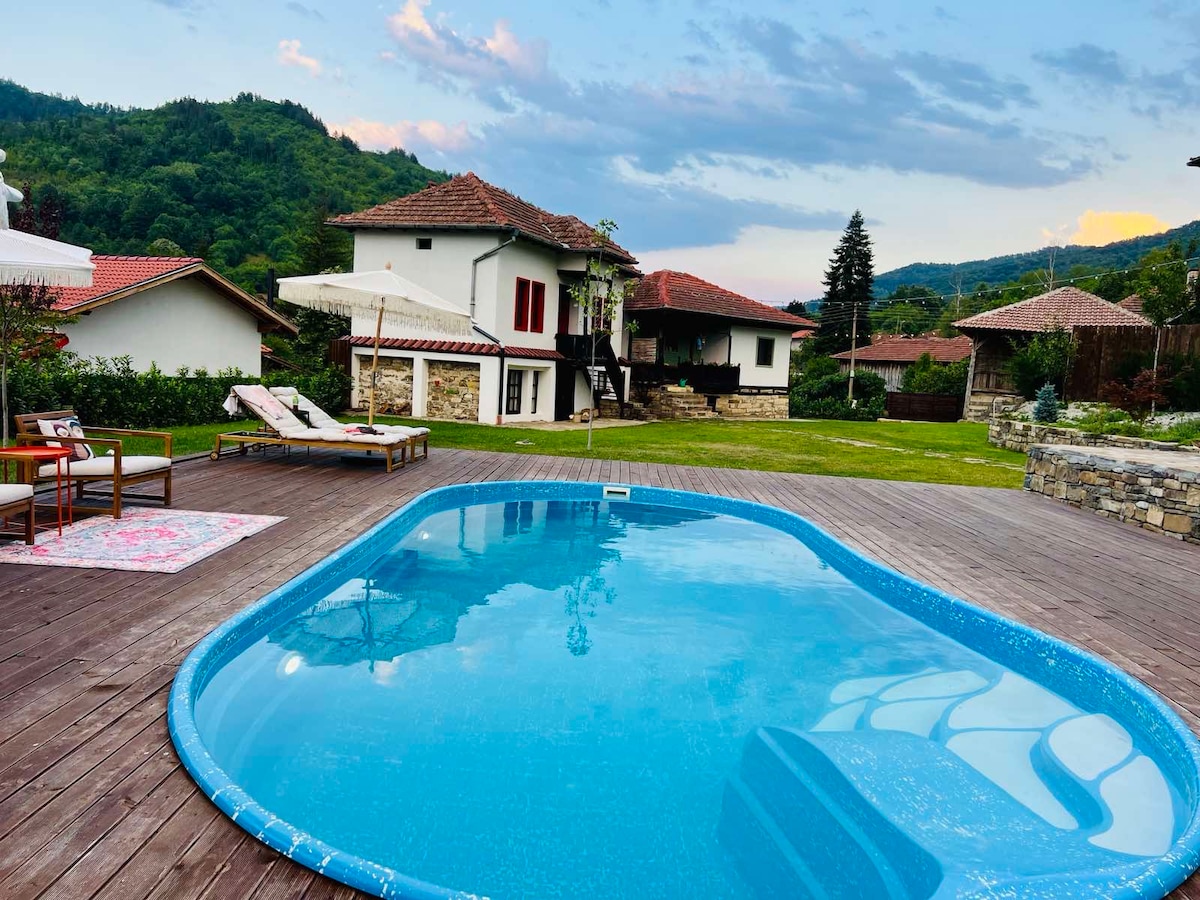 Villa complex trade is situated in an enchanting corner of central Bulgaria The complex consists of two absolutely detached houses-house A and House B. They can be booked individually and together. Each house is equipped with an absolutely functional kitchen, dining area, a relaxation area and a delayed capacity of 12-14 beds. When booking, meals can be requested by the menu and the time of delivery of each meal.