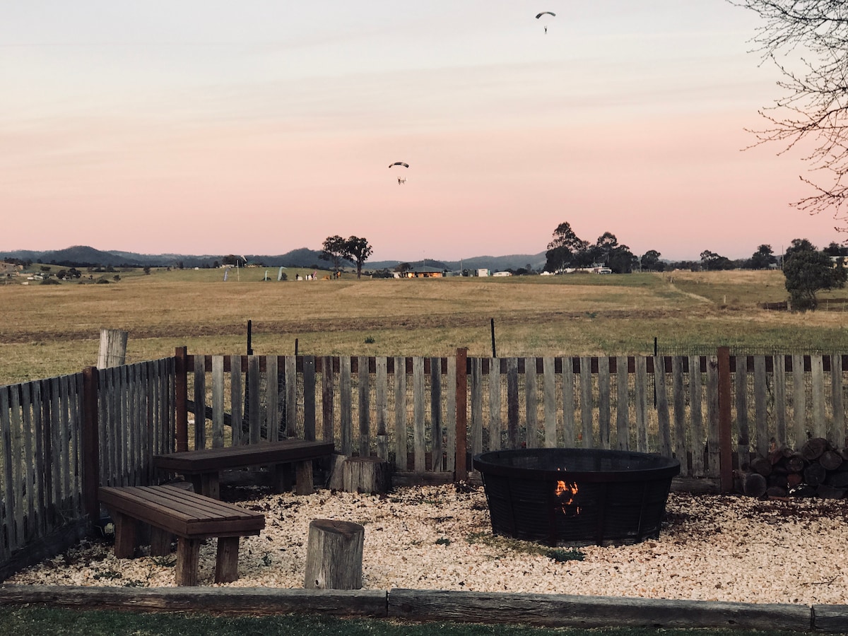 Claret Ash Cottage is a beautiful 1890's mining cottage nestled in the hamlet of Elderslie, Hunter Valley. The cottage accommodates up to 6 guests and suits those wanting to wind down by the fire pit in winter or on the back deck watching the sunset in summer - whilst enjoying the bounty of the Wine Country region. A picturesque 25 minute drive will have you in the heart of the wineries during the day - then back to Claret Ash Cottage by night to wine, dine and admire the view.