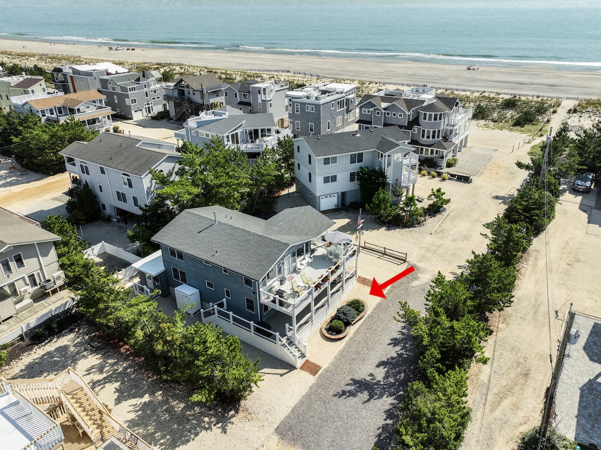 Beautiful, recently constructed oceanside home in ideal Barnegat Light location. Just steps from the beach, and walking distance to bayside boat launch, beach & playground. Proximate to Viking Village shopping & everything northern LBI has to offer. High-end finishes, quality beds, great light, large open kitchen, high ceilings, bbq + outdoor shower. Sleeps 8 comfortably. We love our home and know you will too! Perfect for multiple couples, families (with kids), and small groups.
