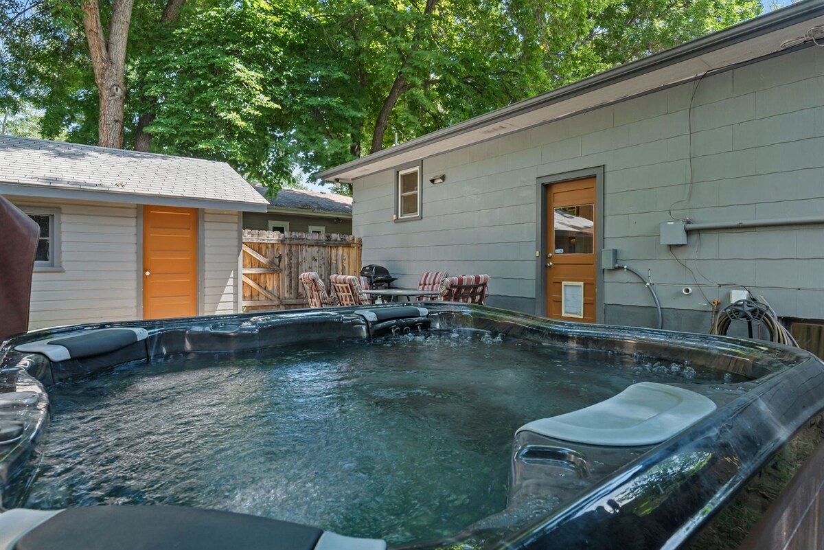 Introducing Grey and Ember, a charming 4-bedroom, 2-bath bungalow in the heart of downtown Loveland, CO! This beautifully appointed home blends classic style with modern comforts, offering hardwood floors, a private fully fenced backyard perfect for dogs, and a brand-new hot tub for ultimate relaxation. Spread across two levels and ideally situated within walking distance to downtown Loveland’s shops and dining, this retreat is perfect for explorers and relaxers alike. With biking trails, a dog