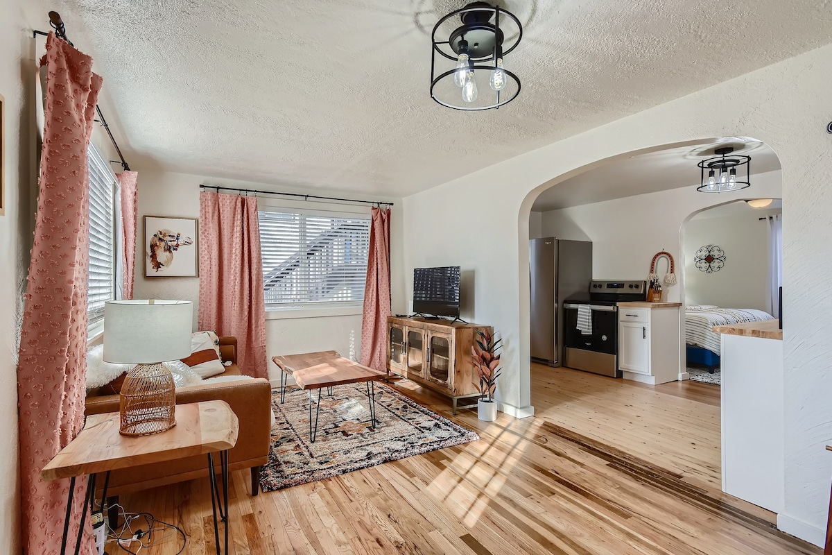 Trendy Downtown Loveland condo attached to historic 1899 home! Enjoy 100% private space with 3 bedrooms, 2 bathrooms and large family room - accommodating up to 8 guests & pet-friendly. Relax in the fenced backyard w/ outdoor seating & grill. Just 5 blocks from downtown eateries, bars, breweries, art studios, museum, shopping, pinball arcade, axe throwing bars, LUX movie theatre & more! Centrally located for trips to Estes Park, Boulder, Denver, Cheyenne WY, nearby lakes, & natural areas.