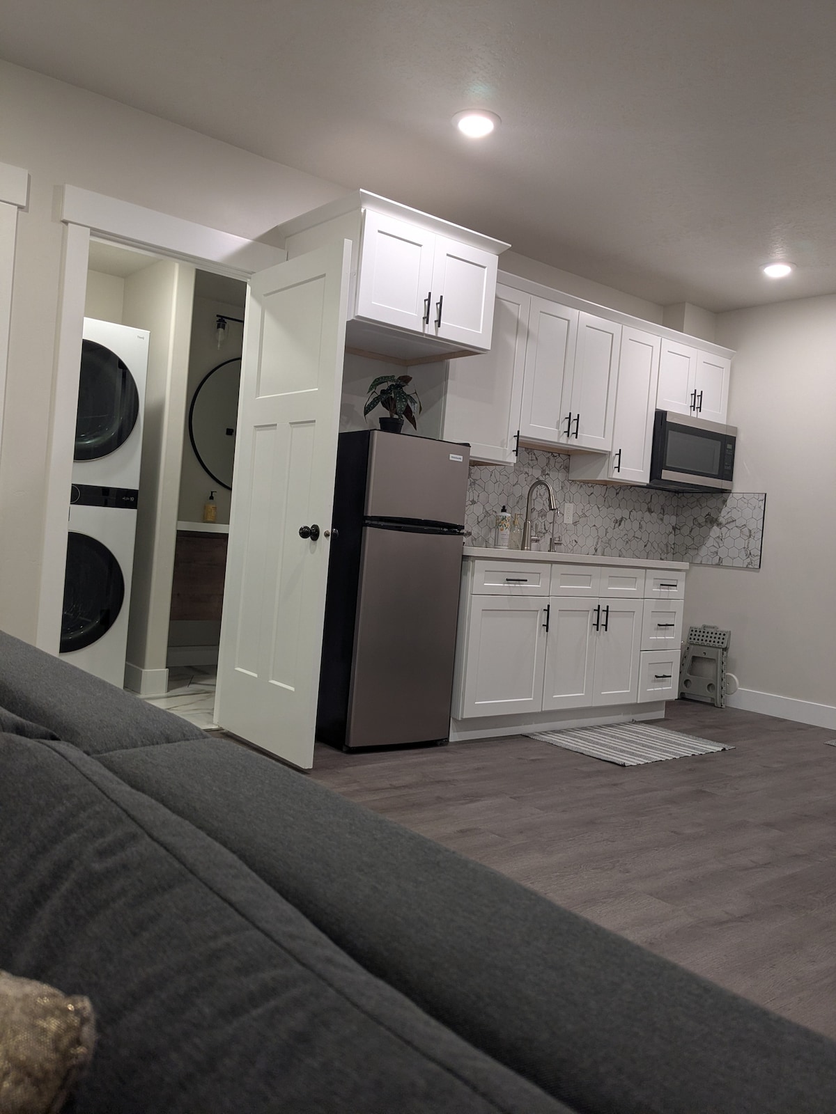 Being away from home can be UNCOMFORTABLE! But it doesn't have to be. This adorable basement apt is perfect whether you're visiting family, working remotely, or need a night away. You get the feel of a boutique hotel with the privacy of a quiet neighborhood and all the comforts of home (parking w/o the awkward backyard entry, full kitchen & laundry, Zoom-friendly workspaces, etc). PLUS you're centrally located for both Utah and Salt Lake counties and just minutes from the mountains!