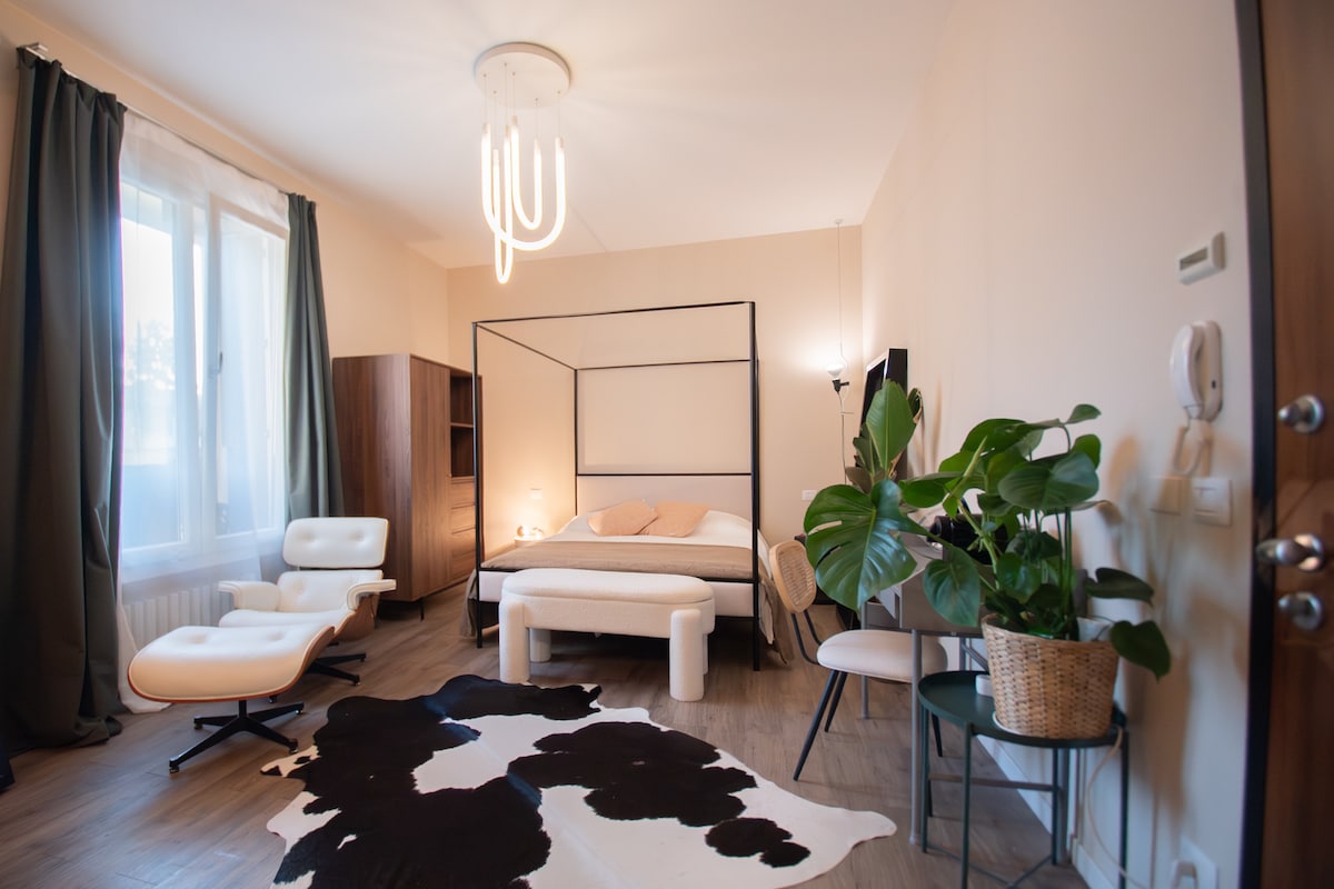 Our cozy Nest in the City is a spacious, newly-renovated studio located in the historic heart of Borgo Palazzo. Just a few steps from the pedestrian area of Borgo Pignolo, it offers easy access to the splendid Città Alta. The apartment is on the first floor of a charming courtyard house, in a quiet and peaceful area of Città Bassa. Well-connected and equipped with all necessary amenities, you will be able to easily reach bars, restaurants, shops, and supermarkets on foot.