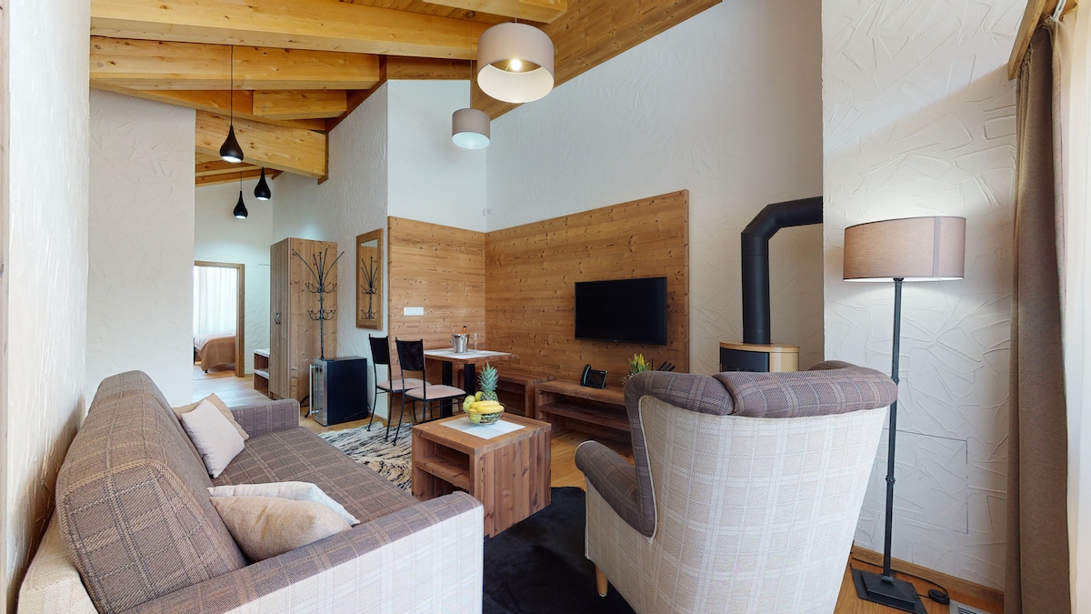 Studio shelter house o powierzchni 33 m kw. z balkonem w wysuniętym lukarnie, z pięknym widokiem na Tatry Zachodnie. Przestronne, 4-metrowe wnętrze wykończone drewnem modrzewiowym. Łóżko typu "king size" 180x200cm z opcją rozsuwania na 2 pojedyncze. Aneks kuchenny ze zmywarką, lodówką, mikrofalą, tosterem,ekspresem do kawy. Rozkładany fotel-sofa o szerokości 100cm czyni studio wygodne dla 2 osób lub 2 os z dzieckiem. Wanna w otwartej przestrzeni, toaleta z umywalką w oddzielnym pomieszczeniu.