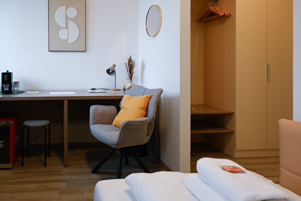 Small but nice: Our snug Cozy Studios with 25m² are the ideal temporary home for 2 people. Thanks to thoughtful furnishings and generous amenities, the maximum comfort is extracted from the cozy studios. The homelike ambience in combination with the inviting community zone right at the front door guarantee a unique stay.