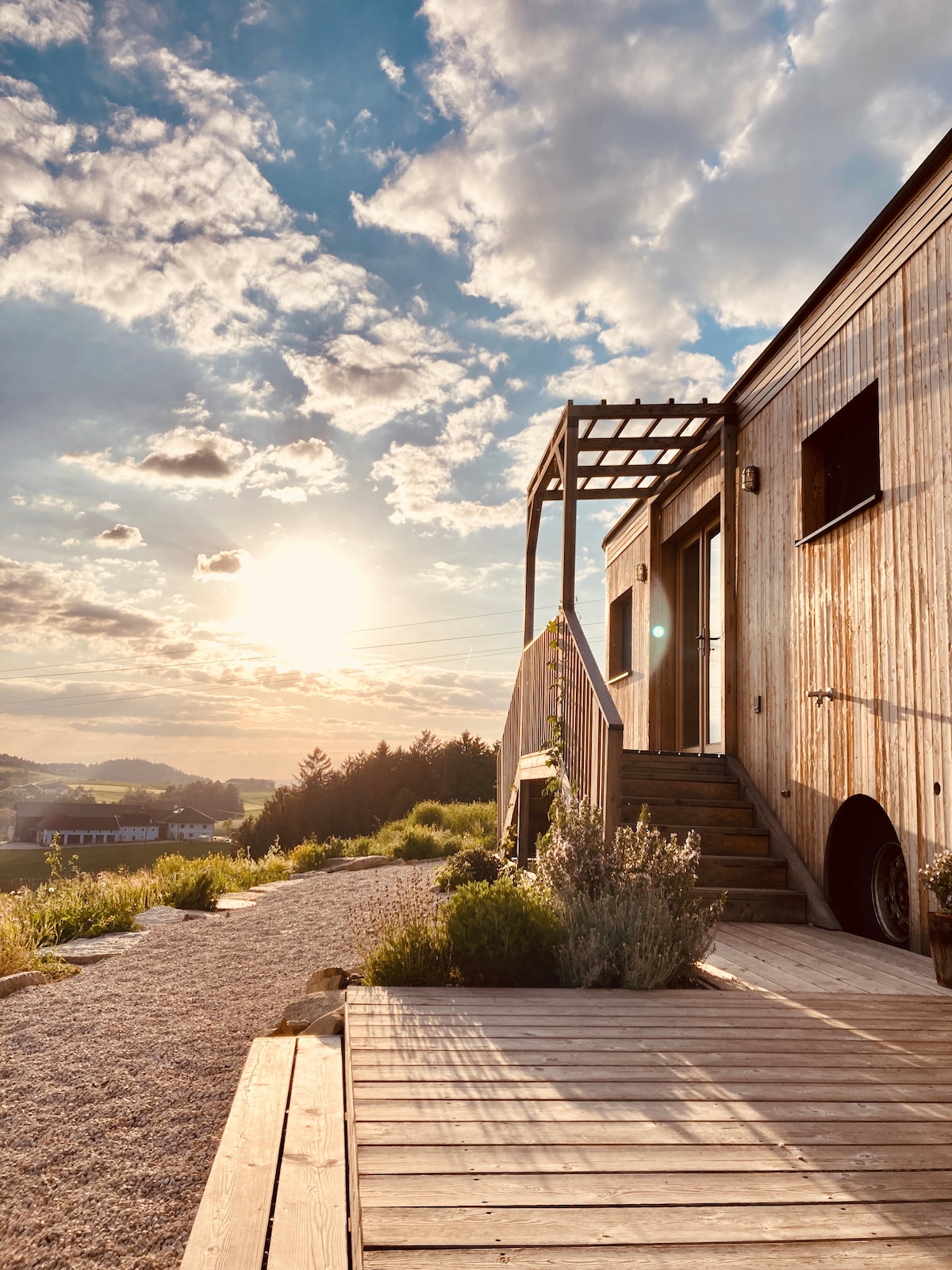 Die Unterkunft stand ursprünglich als Aufenthaltsraum bei einer Erdölbohrstelle im Marchfeld, später wurde sie als Umzugswagen benützt, bis wir ihr Potenzial zu einem Tiny House auf Rädern entdeckt haben. Vom einstmaligen Bauwagen blieb nur das Gerüst, alles andere wurde von uns geplant, eingerichtet und ausgestattet. Gäste finden den Bauwagen nun als Unterkunft, der es an keinem (kleinem) Luxus mangelt. Inmitten der Lamawiese, hat er ein idyllisches Plätzchen auf der Farm bekommen.