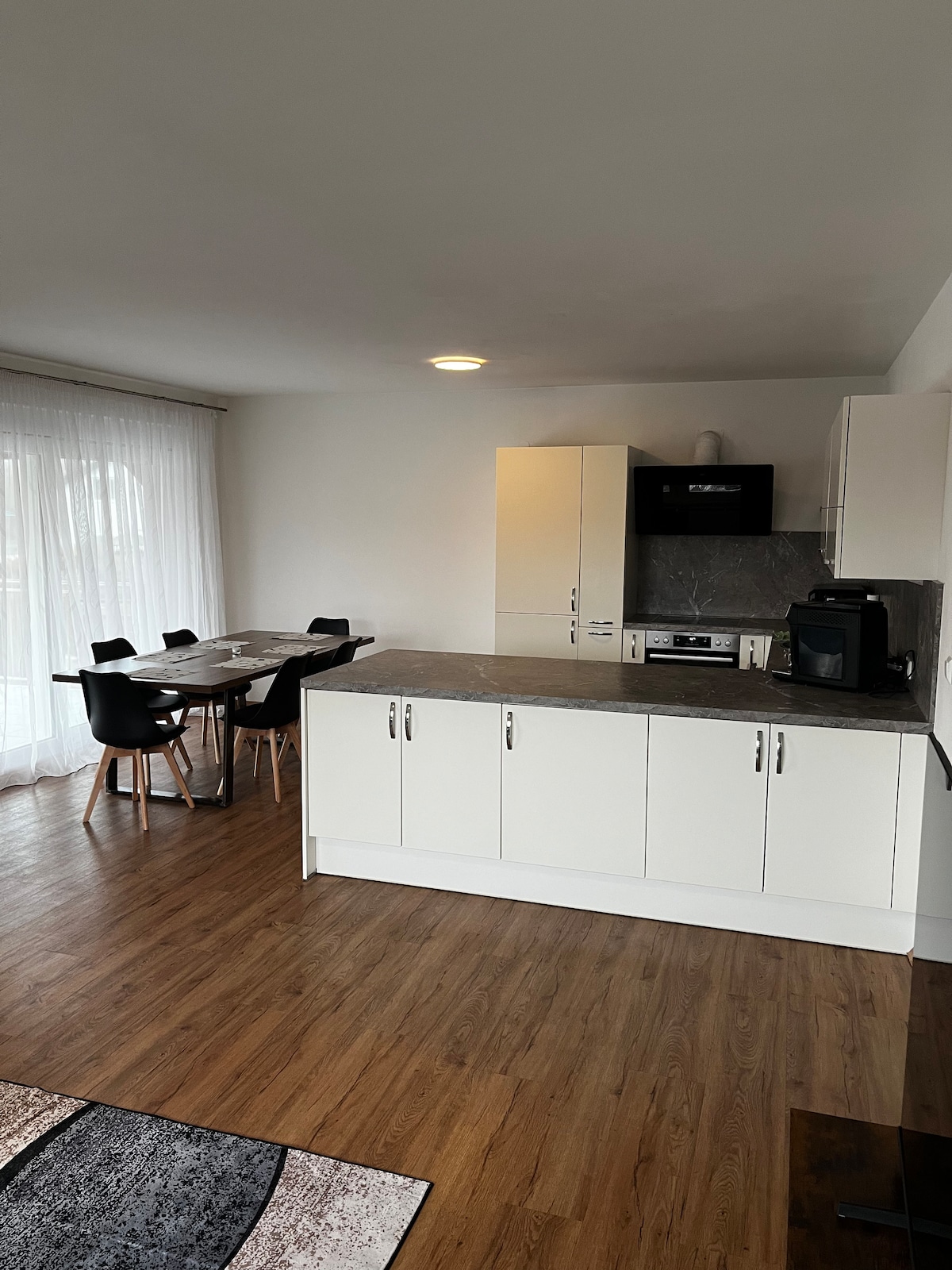 Das Haus ist klimatisiert, hell, geräumig, leicht zu erreichen und mit Komfort ausgestattet. Es gibt 5 Schlafzimmer, eine offenes Wohn-, Esszimmer und Küche, Wintergarten, Terrasse, Kino und einen Flügel. Der Blick reicht bis zum "Neckenmarkter Gebirge" und das Grundstück geht bis zu den Gleisen auf denen die Sonnenland Draisinen unterwegs sind. Auf der Terrasse kann man das Leben bei einer Kaffeekreation genießen, die Du Dir gratis aus der Kaffeemaschine ziehen kannst. Was will man mehr?