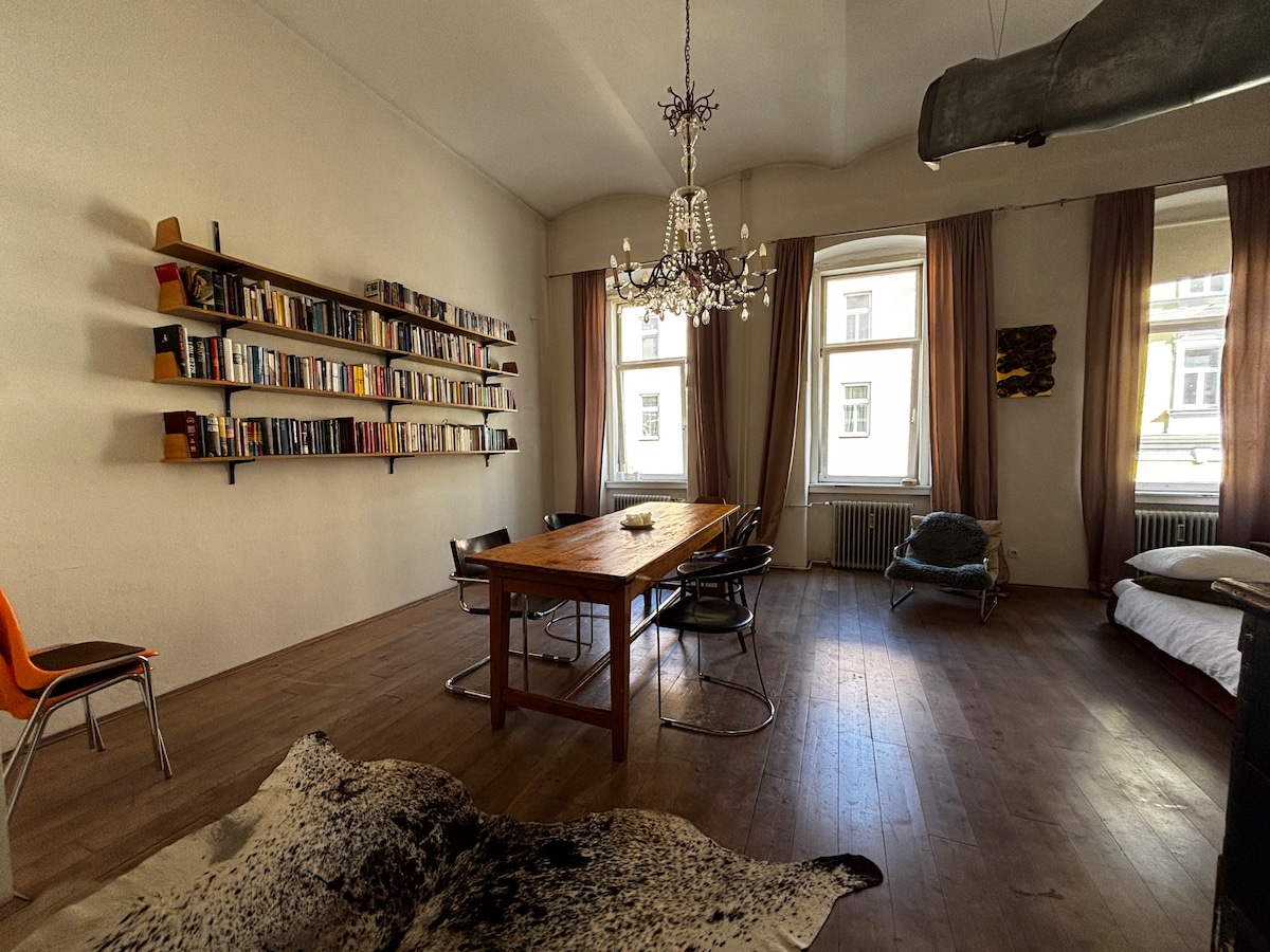 Loft Apartment Nr9 rechts im ehemaligen Werkstatt Gebäude des Großvaters. Die Wohnung eignet sich bestens für kurze oder längere Aufenthalte, sie liegt ruhig im hinteren Bereich des Innenhofes des Gründerzeithauses in der Westbahnstrasse. Außergewöhnliches Wohnen für bis zu 2 Personen. Industrielles Flair von damals in Kombination mit modernem Interieur. Lichtkuppeln mit viel Licht von oben (abdunkelbar) und freie Sicht zum Himmel. Lebenswerte Lokalität, wohl einzigartig im Wiener 7. Bezirk!