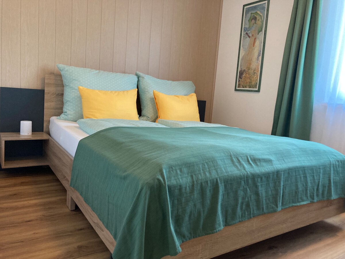 Enjoy beautiful days in new central stylish accommodation about 41m²! 2 minutes walk from the train station and 5 minutes to the FH, living room/bedroom approx. 22m², kitchen approx. 10m², WC+shower+washroom approx. 5m², anteroom-cloakroom approx. 4m², living room ventilation, underfloor heating! basement! Garden/joint use! Code Systems. For children-ki bed, high chair, toys. Gladly contactless! There is the possibility to do yoga in the house for an extra charge! beautiful recreation park 1min!