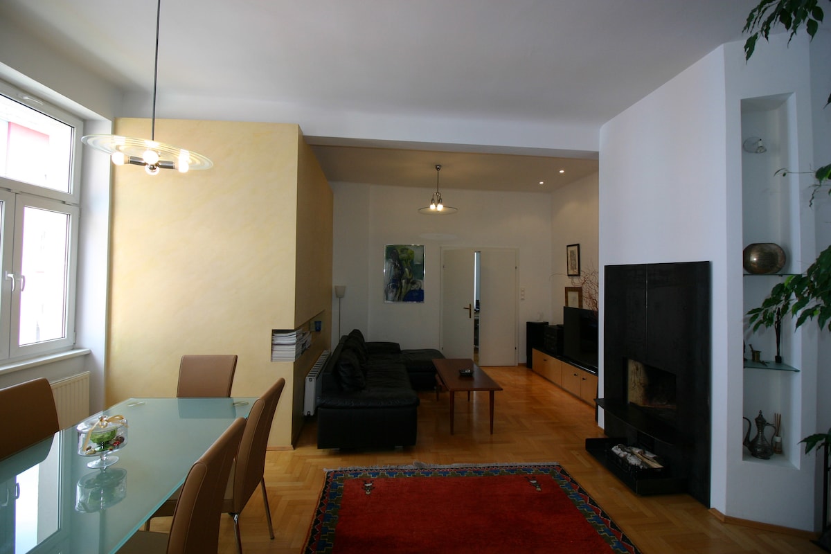 Loft with 115m² und 30m² Terrasse near on of the biggest shopping-areas of Vienna, the Mariahhilfer Strasse, 2 min. from Underground Station of U3 and near the railway Station Westbahnhof. You will love the Penthouse because of the nice view over the roofs of Vienna and the spacious flat and luxury furnituire. This loft is good for Groups and Family (with children), but also couples. We welcome everyone from ervery, be only nice and not to noisy.