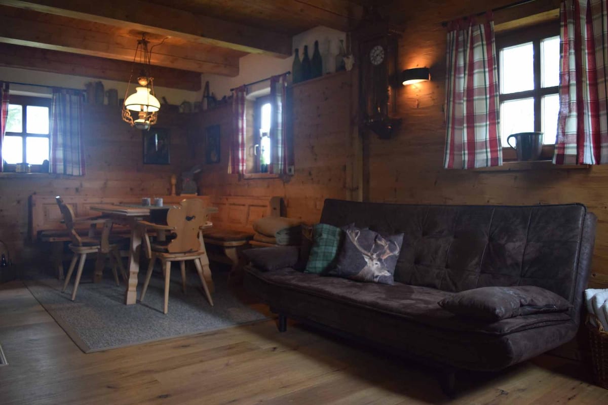 Eingebettet zwischen Scheunen und Apfelbäumen, umringt von Blumenwiesen und einem weitläufigen Hofgelände, liegt das schöne Vollholz-Ferienhaus Waldheimat. Nach einer Wanderung in den Bergen oder nach einer rasanten E-Bike-Tour - Entspannung finden Sie am Feuer vor dem Kaminofen, auf der Liegelandschaft im Wohnzimmer, beim Kochen in der voll ausgestatteten Küche oder bei einem heißen Bad im Relax-Raum. Die Eindrücke des Tages können Sie auf der Terrasse oder im Garten Revue passieren lassen.