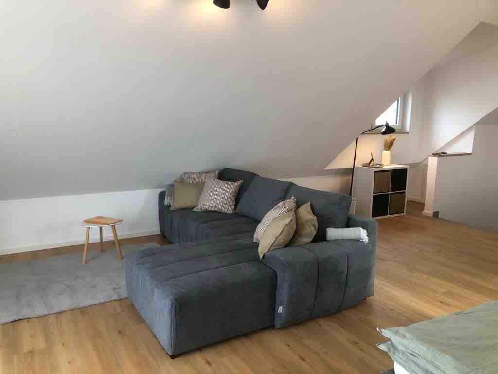 Wir bieten eine 3,5-Zimmerwohnung in komfortablem Ambiente, die als Ferien- oder Business-Wohnung (Home Office) geeignet ist. Eine große Wohnküche mit direkten Übergang zum Wohnzimmer, einem Bad u. 3 Schlafzimmern auf ca. 100 Quadratmeter verteilt über 2 Etagen, viel Platz für bis zu 5 Gästen. 1 kleines Kind könnte auch noch untergebracht werden. Ein nach Süden ausgerichteter Balkon rundet die Sache ab. Zur Selbstversorgung dient eine moderne, gut ausgestattete Küche. Parken vor der Tür.