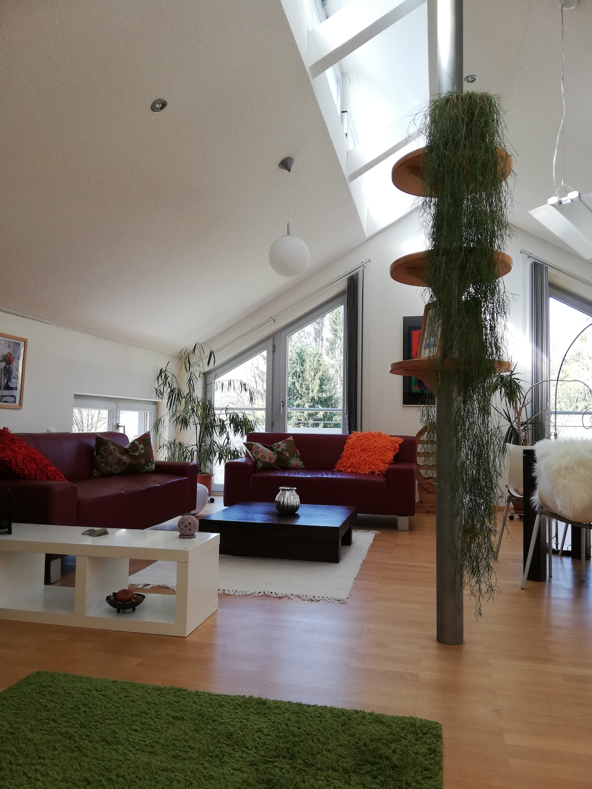 Die Loftwohnung besteht aus zwei Räumen mit 2 Doppelbetten. Im ersten Raum befindet sich die Küche, der Essplatz und ein Wandbett. Von diesem Raum aus geht es auch in das Duschbad und in den zweiten Raum. Das zweite Zimmer ist durch einen großen Schrank in ein Schlafzimmer und den Wohnbereich unterteilt. In meiner Loftwohnung kannst du entspannen und die Freizeitaktivitäten in und um München genießen. Der Flughafen MUC und München sind nur einen Katzensprung entfernt.