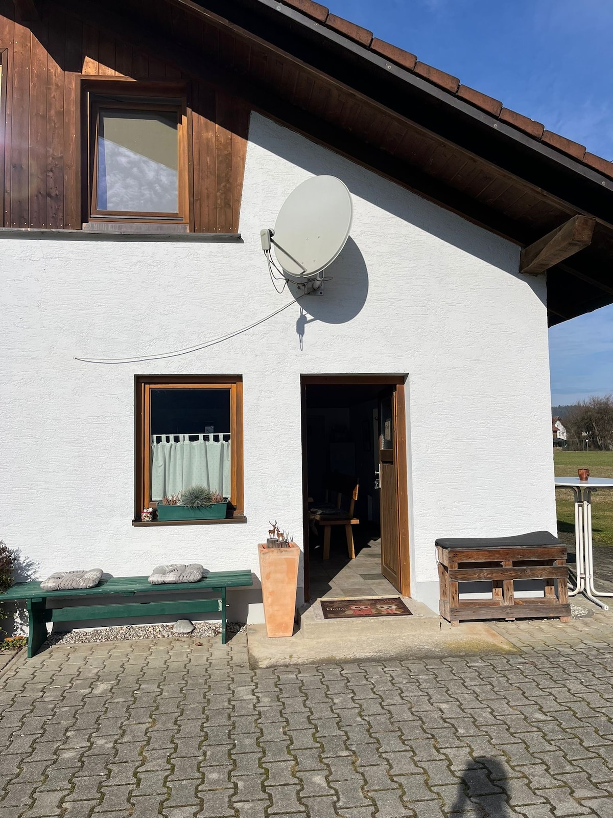Geräumige Ferienwohnung mit drei Schlafzimmern: ein Elternschlafzimmer mit Doppelbett, ein Kinderzimmer mit Hochbett und ein zusätzliches Schlaf-/Ausweichzimmer im Souterrain. Ruhige Lage im Grünen, ideal für Familien, Paare oder Freunde. Entspannen Sie auf der Terrasse mit Grill oder genießen Sie die Aussicht vom Balkon. Der Bayerische Wald, zahlreiche Wanderwege und die Dreiflüssestadt Passau sind schnell erreichbar. Der separate Anbau bietet viel Privatsphäre.