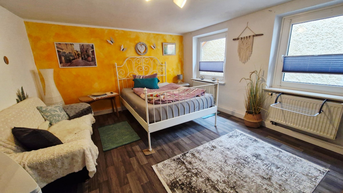 Modernes, sehr schönes 1-Raum APP mit 2 Einzelbetten od. Doppelbett und Schlafsofa, voll augest. Küche mit Mikrowelle, Kaffee/Senseo, Kühlschrank, Geschirrspüler etc. gemütliche Sitzecke und Flachbild SAT-TV, mit Terrasse und Gartenmöblen. Eine Waschmaschine/Trockner ist im Haus in der ersten Etage gg. Gebühr vorhanden, privates Bad mit Dusche. Reinigung+Bettwäsche im Preis enthalten...