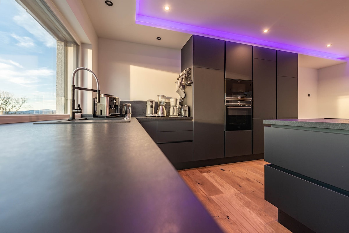 Enjoy quality time together in our 256 m² penthouse featuring a rooftop hot tub and an XXL panoramic terrace. Relax in the warm water while taking in stunning mountain views and the neighboring Penninger Distillery. Perfect for families and groups seeking comfort, nature, and relaxation. With the Saußbachklamm trail just steps away, it’s the ideal starting point for exploring the Bavarian Forest.