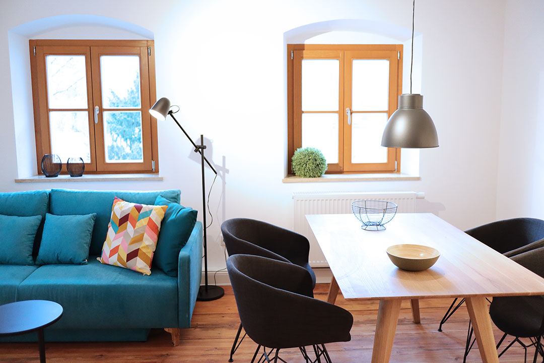 In unseren vier großzügigen und lichtdurchfluteten Ferienwohnungen können jeweils bis zu 6 Personen das einzigartige Stadtambiente Regensburgs erleben und Abstand vom Alltag tanken. Klein aber fein. Im historischen Altstadthaus aus dem 16. Jhd. entstanden ungewöhnliche Designer Apartments mit besonderen Schätzen zeitgenössischer Kunst. Wir haben einen Ort geschaffen, an dem Sie gut ankommen und sich wohl fühlen werden. Überzeugende Qualität mit gutem Geschmack und inspirierendem Umfeld!