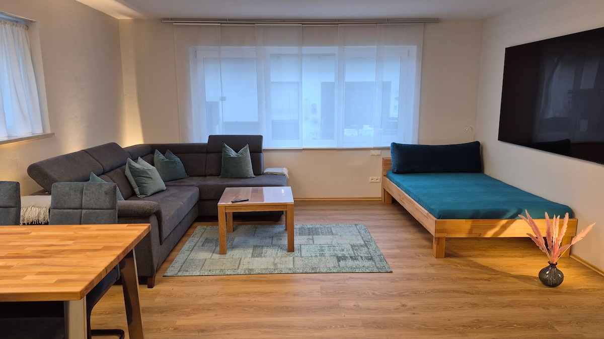 Die helle und zentrale Wohnung befindet sich direkt zwischen dem Ringpark und Südbahnhof Würzburgs. Ausgerichtet ist sie für bis zu vier Übernachtungsgäste. Im Schlafzimmer befindet sich ein 1.60m breites Bett und im Wohnzimmer eine Schlafcouch mit ebenfalls 1.60m Breite. Die Küche ist grundausgestattet. Das Badezimmer verfügt neben einer geräumigen Duschwanne ebenfalls über einen Waschtrockner, wodurch auch längere Aufenthalte möglich sind.