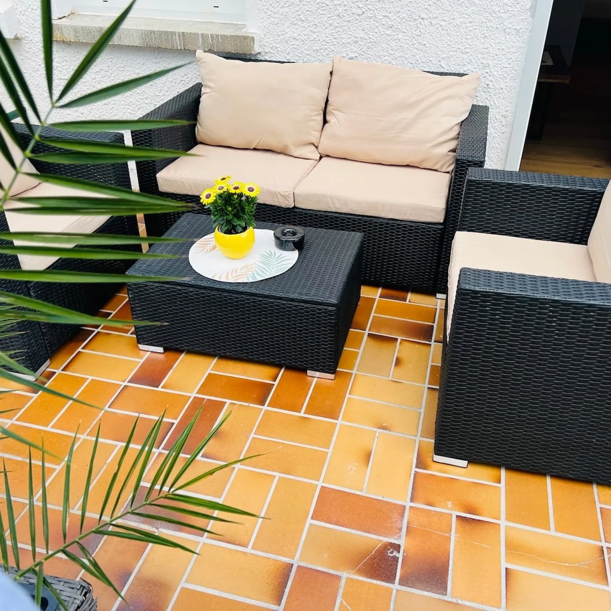 In the green surroundings near the forest with birdsong, enjoy the sun and sit outside on the wraparound balcony or downstairs on the brick terrace, parking in front of the gate, bus stop (line 35, or call taxi) to the city center diagonally opposite, 4 km to the center, 10-minute walk to the Käppele pilgrimage church with view, idyllic and centrally located, cyclists especially welcome, breakfast (available in the mini-fridge) and coffee preparation (comfortably inside or on the balcony)
