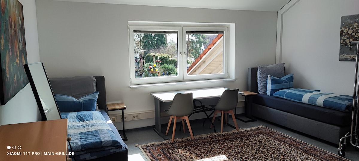 Kick back and relax in this calm, stylish space. There is a lot of room for up to 4 people, areas to relax, cook or work. Feel free to use the PlayStation or the electric sit/stand desk for home office activities. The loft is not far from Aschaffenburg, Frankfurt, Wertheim Village or Wuerzburg. All can be reached in max 50 minutes or less. Also, Spessart forest starts right behind the loft, a lot of walking and biking opportunities can be accessed from Waldaschaff and from the loft.