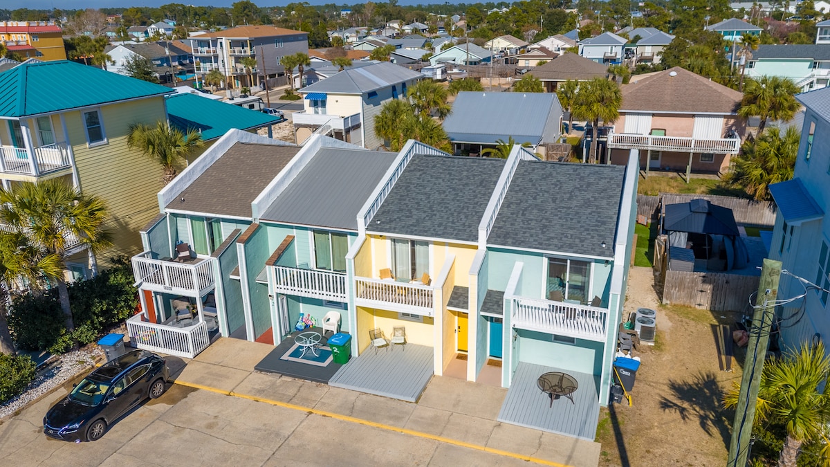 **Pet Friendly! Up to 2 dogs, please email me details on your sweet pup(s) We do have restrictions on certain breeds. $25 flat pet fee per stay.** Best location in PCB! Small BEACHFRONT complex of 4 townhomes. Pull right up to your front door. Parking for up to 4 cars depending on the sizes. Walk straight through the townhome to your back deck which sets right on the beach! Walk straight down to the beach and beautiful gulf waters. 2 Beach Chairs include with your stay. Gas grill, outdoor showe