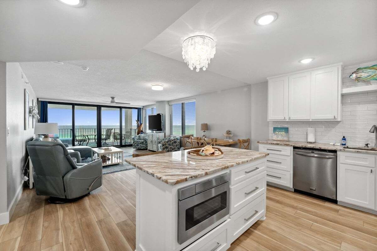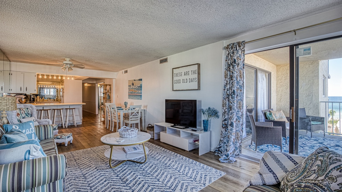 Enjoy the Beachfront serenity you deserve at The Emerald Escape - a fully renovated corner condo offering your relaxing getaway with all of the amenities you could wish for on your perfect vacation. Take in breathtaking sunrises, sunsets & sea life from the private balcony, stroll along the sugary white sands of the Emerald Coast, take a dip in 1 of 3 amazing pools located on the property (1 heated) with a poolside bar & grill, all while enjoying the comforts of home in this fully-stocked condo!