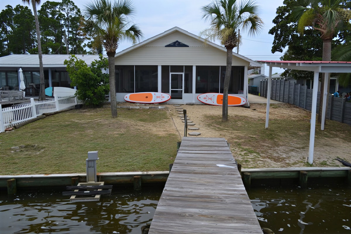 Pet-friendly beach house w/ a fully fenced backyard perfect for dogs, kids, grilling, games, and a fire pit. No elevators or long walks like condos, easy private outdoor access right at your door. 8 min walk to Beach Access #11. 2 blocks to Dolphin Dock & bay boat ramp great 4 boating, fishing, kayaking & paddleboarding. 1.4 miles to St. Andrews State Park w/snorkeling, swimming, shelling & Shell Island ferry. Close 2 restaurants & shopping, yet tucked in quiet neighborhood. Beach gear included.